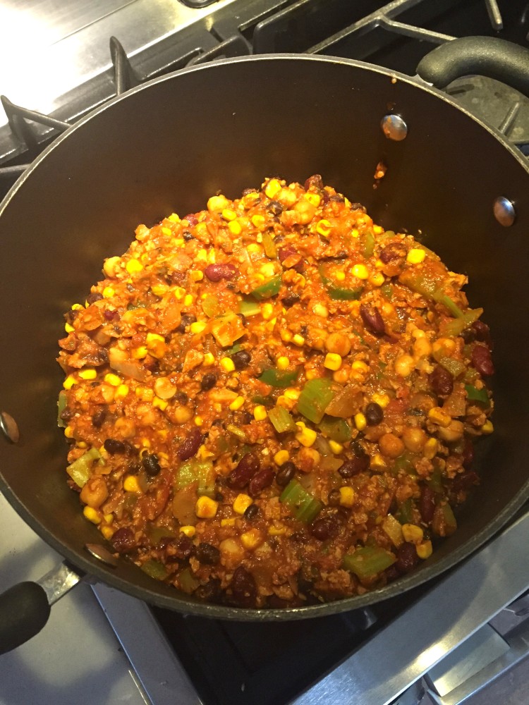Love the variety of textures, spices + now colors that each bowl provides. The one thing I will insist on, is that we build flavor. The chilis I do not enjoy are the ones that have a homogeneous flavor throughout + that flavor is salty, spicy MUD. That muddy flavor is the result of throwing all ingredients in the pot or crockpot at once to stew, cooking on too high heat + adding too much salt. While chili is a simple comfort food of peasant roots, it’s flavors should be a rich complex mosaic, maintaining integrity of each ingredient but together creating something more beautiful, intriguing + satisfying than they could be independently. Yeah, dishes like chili are the perfect culinary metaphor for America, a nation composed of generations of immigrants each bringing unique culture, techniques + ideas, learning from each other, enriching the lives of our neighbors + celebrating our one ongoing commonality, being American.