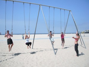 So summer is just around the corner. Days are longer and the weather is better. Time head into the great outdoors here in California and workout in different ways. Just because you’re outside doesn’t mean sacrificing resistance training. Go to the outdoor playground at the Santa Monica Pier to get a great calisthenics workout. Use the suspended ropes for climbing, use the monkey bars for pull-ups, the parallel bars for dips, the low bars for inverted rows and push-ups. Circuit these with sand sprints or squat jumps onto a bench to provide fat busting anaerobic workouts. At the park, a BOSU ball and agility ladder can be combined to provide a fantastic workout. Alternate ladder drills with BOSU exercises, try push-ups, cross crunches, burpees, hip thrusts and squats. This will burn calories and tone up those muscles. If you live in the Hollywood area, get out to Runyon canyon for a great workout. Do sprints up the fire road or hike the trails for steady state cardio. Take a rubber resistance band along and use various items like fence posts, benches or light posts as anchor points allowing you to do resistance training exercises. Try chest press, rows, pull downs, curls, triceps extensions and squats to build strength and tone up muscles. Take advantage of the amazing SoCal weather and get a tan while getting in shape this summer using nature and basic equipment. Don’t forget your sunscreen though.