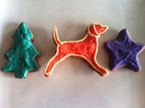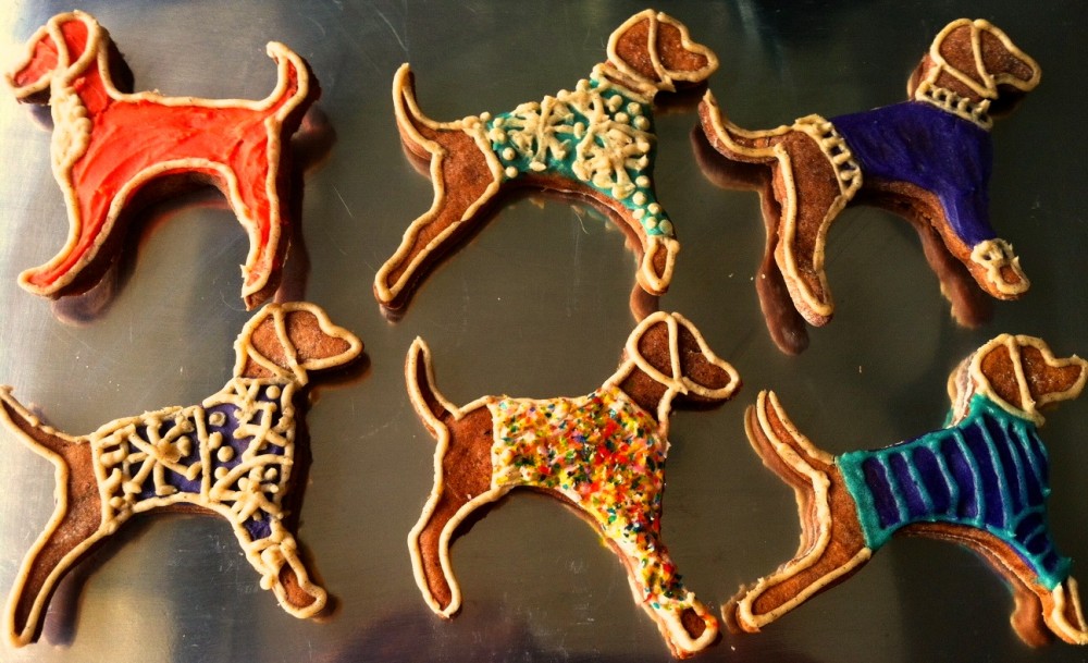 *** I used a really basic dog shape found at Surfas in Culver City, likely a Labrador, and pulled the legs a bit to make them longer and make the Ginger Beasts leaping. Funny enough, there’s a number of dog breeds whose likeness has been captured in these cookie cutters. Unfortunately, Mojo’s Rhodesian Ridgeback roots cannot be found, and he was insulted by the Vizsla shape which looked bloated and judging by the small head, had a pituitary problem!