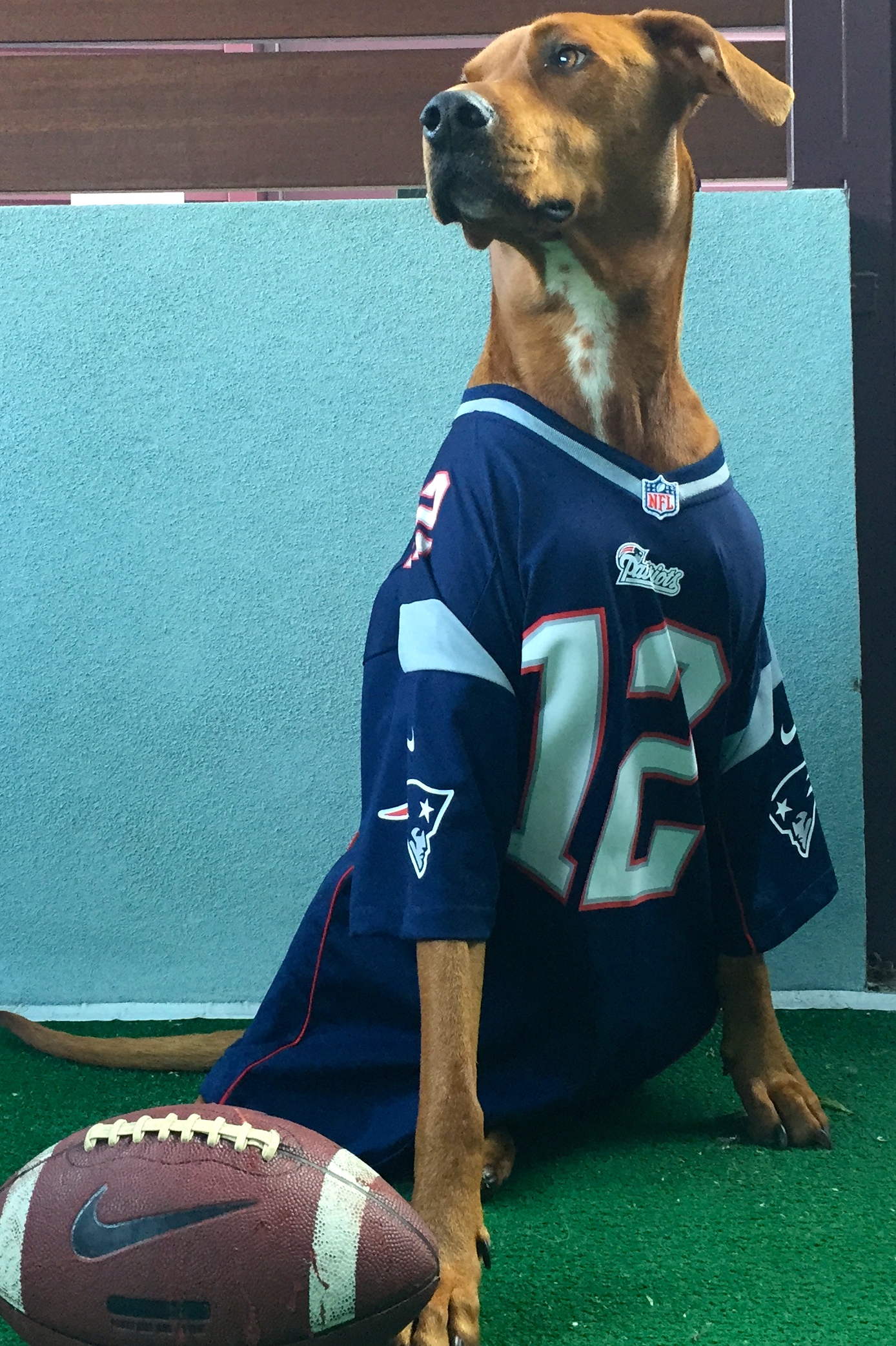 Gave Mojo a Broncos jersey to wear for game, but he peed on it!