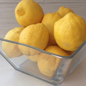 As you know I have a love / hate relationship with sugar: I love it’s taste but hate that sugar makes me fat and lethargic. So, when a client gave me a bushel of organic lemons from her tree today, I knew I had to share my simple 3 ingredient Stevia-Sweetened Lemonade recipe. At 20 calories and only 2 grams of sugar, that being the natural fructose from lemons, you can afford to imbibe on this refreshment.