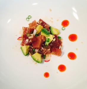 1 lb sashimi grade ahi, chopped into ¼” cubes