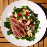 Burgers, filet, chicken, salmon, halibut…cannot think of a meat or fish this salad does not pair well with! Plus, the right plating dresses this versatile gal up for a sit-down dinner party or down for one of our uber-casual bikini BBQs.