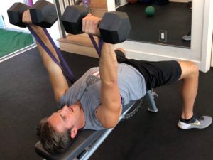With bands, I can develop strength while working at high speed during the concentric contraction, and slowly on the eccentric contraction. By working the concentric phase fast, I can simulate actions that are similar to a volleyball spike or a tennis serve which will improve my power on both. I can also work slowly on the eccentric phase which places the muscle I’m targeting under tension for a longer period of time, allowing for greater strength gains.
