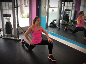 I also love the fact that I can change the plane of motion I’m working easily + fluidly. Essentially, bands allow us to move in a more natural + functional way. Another benefit is that they permit us to work many of the smaller stabilizer muscles that are hard to hit with traditional weights. This makes bands a useful warm up tools, especially prior to traditional strength sessions. For example, several sets of banded side-walks and directional lunges are perfect prehab before squats and deadlifts, because they activate the glute medius, prepping these muscles (that many lifters unknowingly do not use during these lifts), to do their job alongside prime movers.