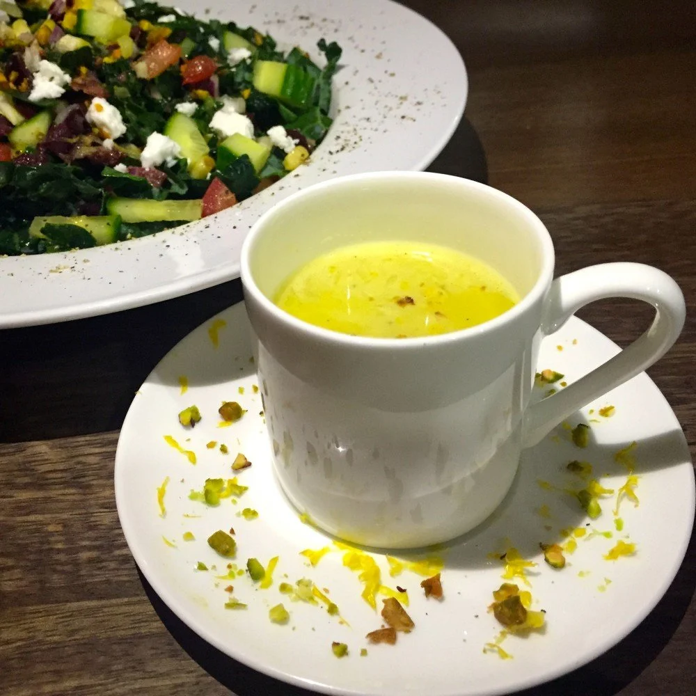 - Prepare dressing by zesting full lemon into deep bowl or food processor. Slice in half and juice into bowl. Add pistachio oil, stevia and black pepper. Whip up with an immersion blender or food processor.