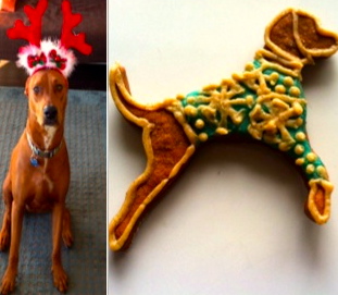 Tasty spicy chewy ginger cookies. Gluten free. Low fat. Naturally sweetened with dates and stevia. Cut traditional Christmas cookie shapes or indulge yourself by dressing the pup up in an ugly christmas sweater!